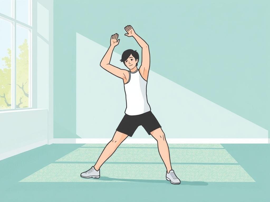 - Боковые шаги с лёгкими перекатами стоп — 1–2 минуты.